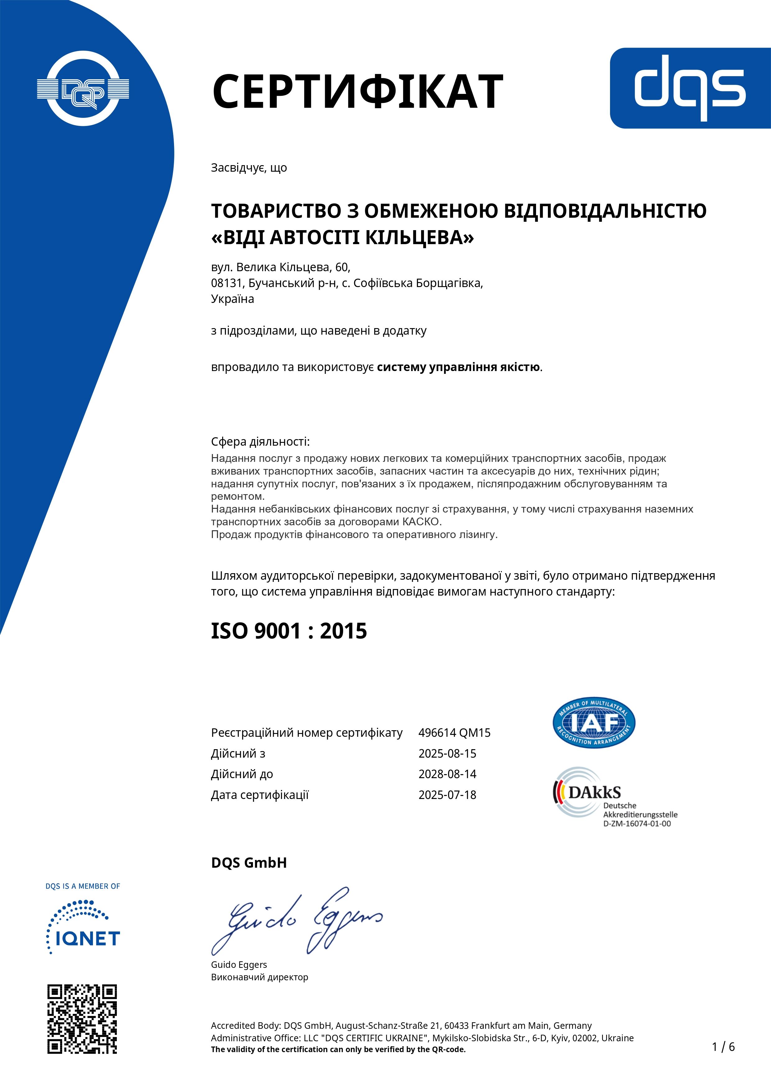 Реалізуючи політику у сфері якості керівництво Компанії, відповідно до інтересів замовників, персоналу, партнерів та суспільства і держави в цілому, бере на себе зобов'язання керуватися наступними принципами: